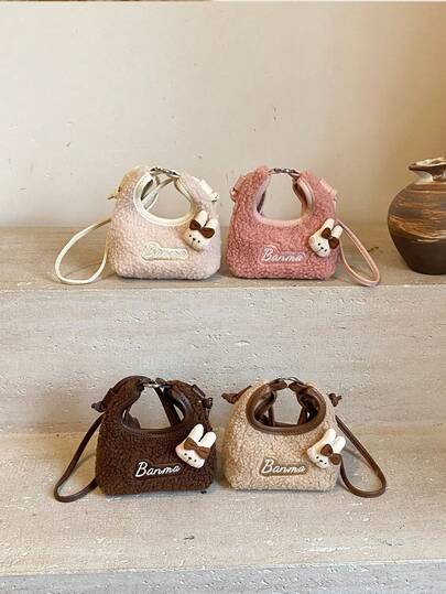 1个兔子造型毛绒迷你手提包,可爱毛绒托特包,斜挎包,适合女孩/青少年/学生,可用于日常使用/购物/节日活动 - 彩色 - 查看 1