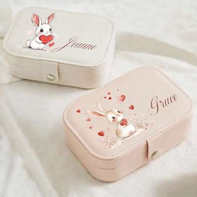 1个兔子造型仿皮首饰收纳盒,适合存放戒指、耳环、手镯、项链等首饰,便携式礼盒,是送给女性的理想礼物,适合生日、节日、周年纪念日、新年祝福和斋月礼物。 - 彩色 - 查看 1