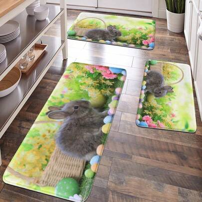 1件装兔子和复活节彩蛋图案柔软绒面浴室垫、厨房地毯、门垫、家居装饰、缓解疲劳地垫 - 彩色 - 查看 1