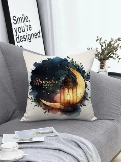 1入組齋月月亮和燈籠印花靠墊套無填充物波西米亞風葉子和月亮印花裝飾方形靠墊套適用於沙發床 - 彩色 - 查看 1