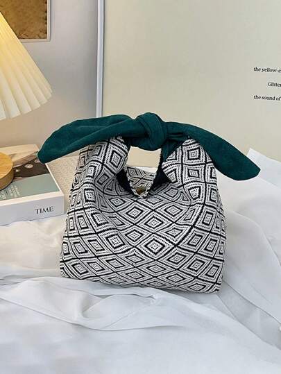 1入組時尚便攜式蝴蝶結設計防臟學生午餐盒收納袋 - 彩色 - 查看 1