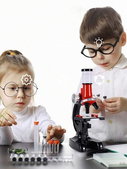 1 件款式和顏色隨機的高倍塑膠兒童顯微鏡套件,包括 2 個收集瓶、2 個玻璃載玻片、1 個鑷子、1 個標本盒、1 個玻璃標本,非常適合科學實驗設備和幼兒教育玩具 - 彩色 - 查看 1