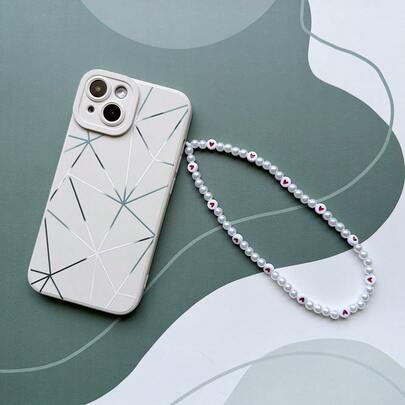 1个红色心形串珠仿珍珠手机挂饰,可爱简约ins风手机配件,送给同事的礼物,兼容安卓及大多数智能手机,送给母亲、家人、朋友、孩子的礼物,生日、节日手机链 - 白色 - 查看 6