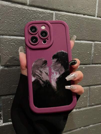 1入組紅色肖像印花3D紋理霧面手機殼,配有相機保護,適用於iPhone - 彩色 - 查看 1