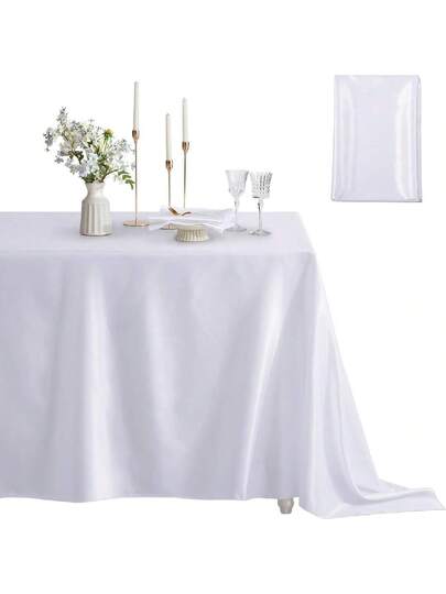 1 块可重复使用和可清洗的长方形白色桌布,涤纶面料,适合婚礼、派对、宴会 - 白色 - 查看 1