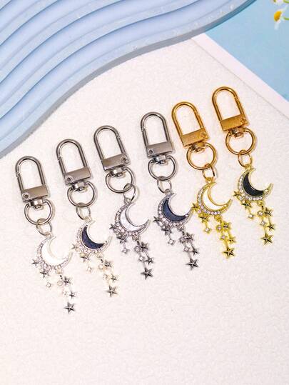 1个镶钻月牙形钥匙扣,时尚个性化浪漫闪亮合金金属吊坠,适用于手机、平板电脑、耳机、Kindle等装饰 - 彩色 - 查看 12