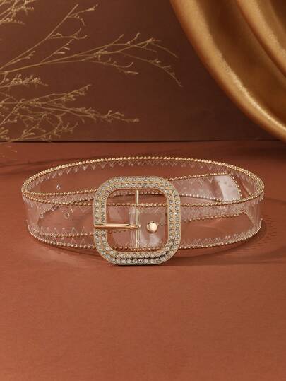 1条镶钻方形扣透明镂空腰带,时尚百搭,可搭配连衣裙,简约设计,适合日常穿着。 - 無色 - 查看 1