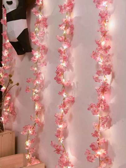 1 件浪漫童话樱花窗帘灯串,卧室装饰花环灯,适用于育儿室、客厅/卧室、家具装饰和生日派对、婚礼、圣诞节、节日和派对用品、新年、斋月、窗帘、壁炉、楼梯、圣诞树灯,营造清新喜庆的氛围,电池供电的墙壁装饰,全年(不含电池) - 彩色 - 查看 10