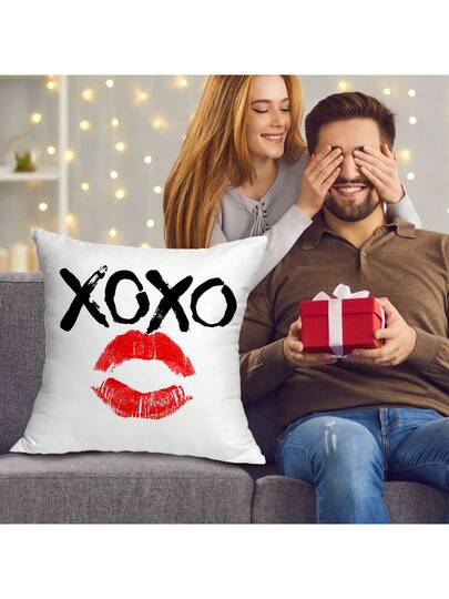 1個浪漫的方形枕套,紅唇圖案,不帶枕芯,適用於客廳或臥室沙發裝飾,情人節、周年紀念或求婚時的絕佳禮物 - 紅白色 - 查看 1