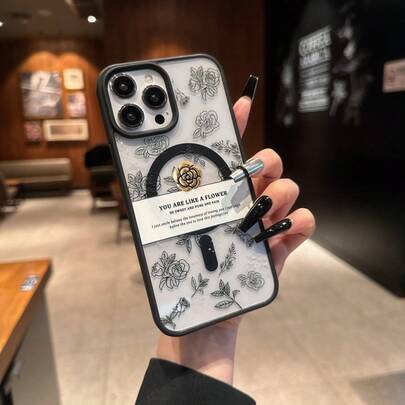 1个玫瑰花标语励志英文文字全屏图案黑色亚克力磁吸防摔手机壳,适用于 17 Air/17 Pro Max/17/16 Plus/15/14/13/12/11/XSM/XR,不会变黄