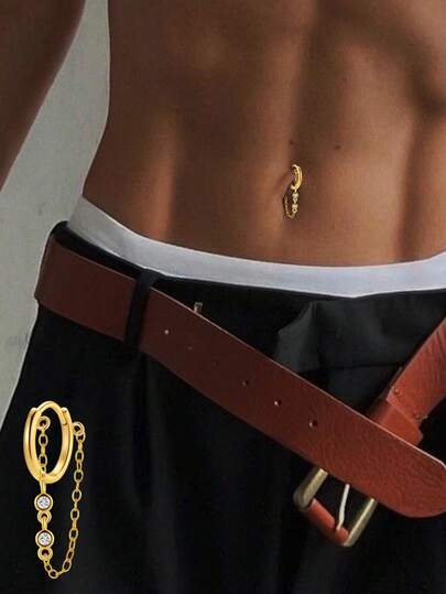 1件S925纯银锆石流苏肚脐环,简约经典日常佩戴女士肚脐穿刺饰品 - 單隻 - 查看 1