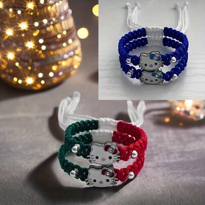 SANRIO 1条三丽鸥Hello Kitty编织手链,可爱优雅的动物主题饰品,编织材质,适合日常佩戴和送礼,情人节理想之选,四季皆宜。