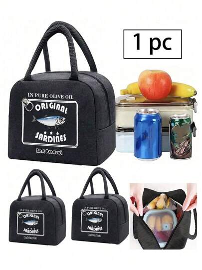 1 件沙丁鱼印花牛津布便当午餐袋、保温午餐袋、便携式午餐袋 - 彩色 - 查看 1
