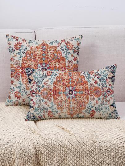 1入組捲軸印花靠墊套,無填充物,波西米亞風織物裝飾抱枕套,適用於客廳,家居裝飾 - 彩色 - 查看 1