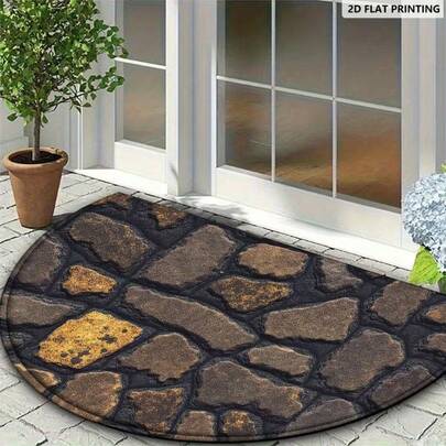 1 件半圆形地毯,石纹印花门垫,脚感柔软,适用于客厅、卧室、厨房、走廊、书房、餐厅、浴室 - 彩色 - 查看 5