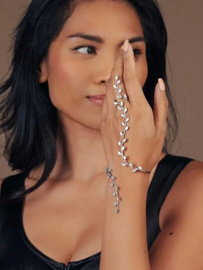 1 件闪亮叶子手链,镶有水钻,个性化简约时尚配饰(可调节手链) - 銀色 - 查看 1