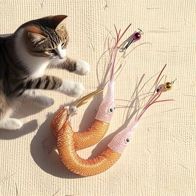 1个虾形猫咪洁齿磨牙玩具 - 这款塑料材质的吱吱作响的玩具是宠物娱乐的理想之选。它配有随机颜色的铃铛、怡人的香味、可替换的逗猫头,适合所有品种和体型的猫咪,无需电池,并饰有色彩鲜艳的人造羽毛,是一款经久耐用的玩具。 - 彩色 - 查看 1