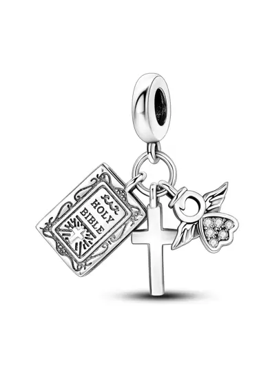 1件银色十字架、圣经、天使珠吊坠,适用于手链、项链、DIY首饰制作,男女通用 - 銀色 - 查看 1