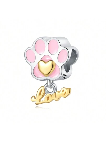 1 件镀银心形和字母“爱”和狗爪形串珠饰物,可制作成 DIY 手链和项链,是送给姐妹的绝妙礼物 - 杏色 - 查看 1