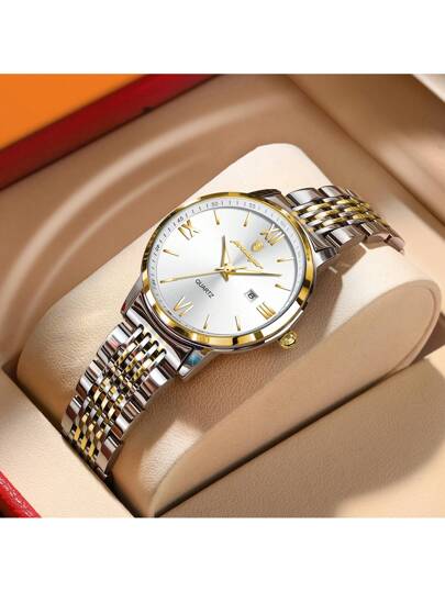 1 件银色女士手表礼物真品品牌 POEDAGAR(原装)奢华全不锈钢表带时尚商务 50 防水手表水晶钻石罗马刻度夜光指针妻子朋友爱人商务伙伴礼物商务精英必备手链考试返校必备品 - 白色 - 查看 7