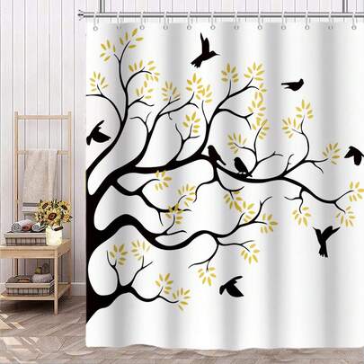 1 件装简约小树图案浴帘,适用于浴室浴缸隔断、浴室浴帘装饰、浴室配件 - A - 查看 6