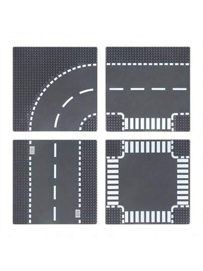 1件裝小顆粒道路積木配件底板,適用於各種積木、交叉路口、丁字路口、彎道、都市道路底板 - 彩色 - 查看 1