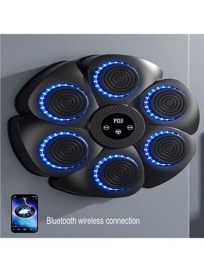 1 件智能音乐拳击机无指手套、电子蓝牙智能拳击靶、壁挂式拳击训练垫、便携式家用健身器材 - 黑色 - 查看 1