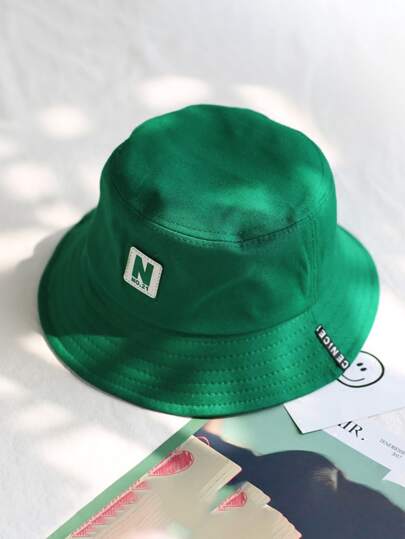 1 件纯色渔夫帽,带字母“n”刺绣,适合所有季节休闲情人节男士太阳帽夏季帽子,适合徒步旅行和钓鱼等夏季户外活动 - 綠色 - 查看 1