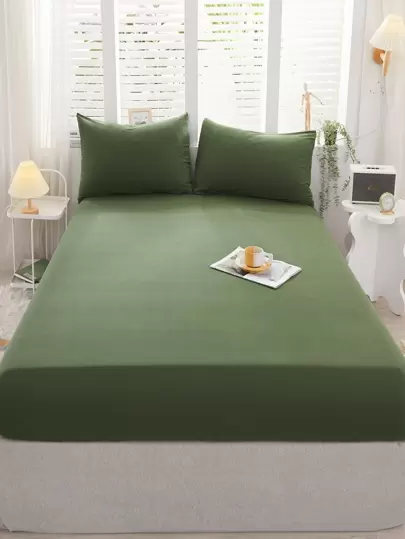 1入組素色床笠現代主義純綠色時尚床笠四季皆宜 - 軍綠色 - 查看 1