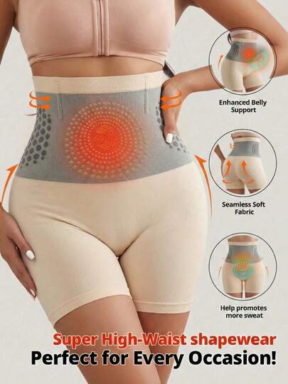 1件装纯色高腰塑身短裤,透气无缝收腹提臀内裤 - 米色 - 查看 1