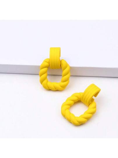 1件方形和圆形极简耳环,喷胶漆亚克力耳环,女士款 - 黃色 - 查看 1