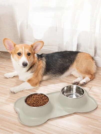 1只不銹鋼雙碗寵物碗,具防濺濕設計,底座座 - 米色 - 查看 1