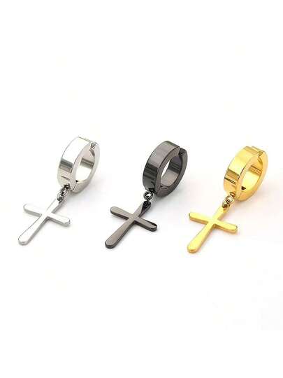 1 件不鏽鋼耳夾十字形耳環無耳環,時尚龐克男女通用耳飾 - 彩色 - 查看 1