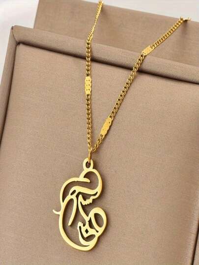 1件不锈钢镂空人体几何吊坠项链,复古时尚个性化设计,适合男士、女士、情侣、街头、日常、派对佩戴(OPP袋包装) - 金色 - 查看 1