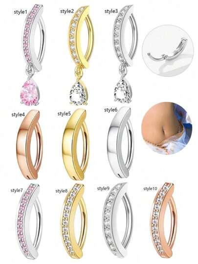 1件装不锈钢肚脐环,镶嵌立方氧化锆,黄铜材质,垂坠式设计,时尚简约,适合日常佩戴 - 肚環 - 查看 12