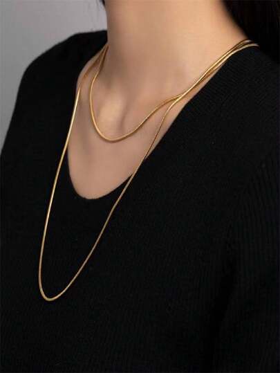 1 件不銹鋼超長蛇骨鏈項鍊,非常適合分層,奢華金色,可調節長度,適合女士毛衣服裝 - 金色 - 查看 1