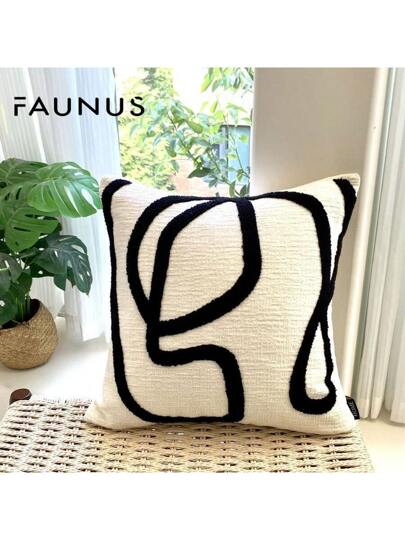 1 件条纹雪尼尔面料刺绣装饰枕套,北欧风格简约装饰,适用于卧室、客厅、沙发、户外、节日(无填充物) - 雪尼爾抽象線 - 查看 1