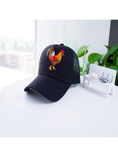 1件時尚簡約男士黑色繡雞毛線棒球帽,適合戶外和休閒穿著,帶有彎曲邊緣 - 黑色 - 查看 1