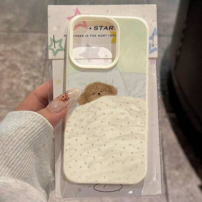 1个TPU材质棕色小狗图案手机壳,兼容 17 Pro Max/17/16 Pro Max/15/13/12/11、S20 FE/A15/S24/A55、Redmi Note 11/Note 12/Note 13 Pro,全包防摔软壳保护套 - 白色 - 查看 1