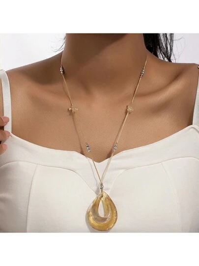 1個女性用淚滴形吊墜項鍊,個性化和時尚的珠寶首飾,度假風格禮物 - 米色 - 查看 1