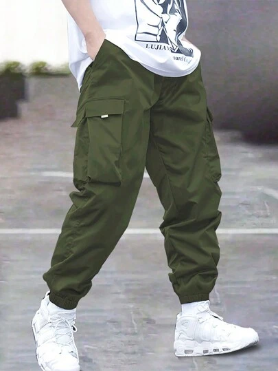 1 件青少年男孩休闲运动裤,带口袋,抽绳下摆,适合春、夏、秋、冬 - 綠色 - 查看 1