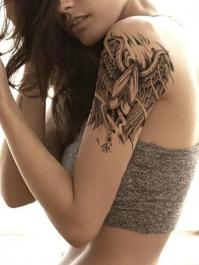 1 件臨時紋身貼紙翅膀、佛珠和性感設計,男女防水逼真閃光紋身轉移