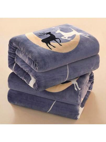 1片加厚珊瑚絨毛毯,全季節柔軟舒適的毛毯,適合在辦公室小憩和家用 - 藍色 - 查看 1