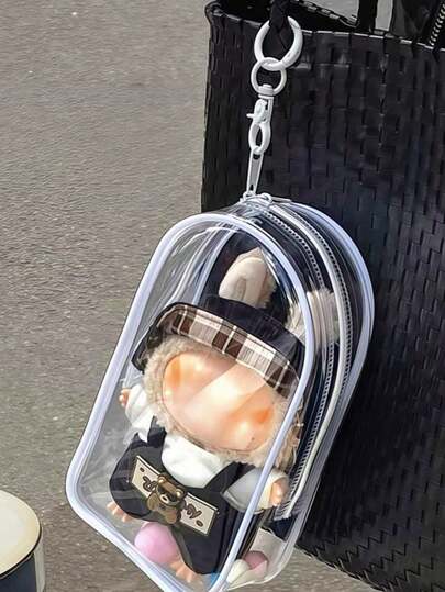 1个手提/收纳袋,适用于毛绒娃娃,PVC化妆包,透明大容量整理袋,可收纳充电器、数据线、耳机、情人节装饰品、情人节礼物包装袋(不含娃娃) - 彩色 - 查看 1