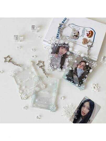 1个透明雪花硬卡套,学生校园卡/餐卡收纳保护套,3英寸拍立得相机卡套挂件 - 彩色 - 查看 1