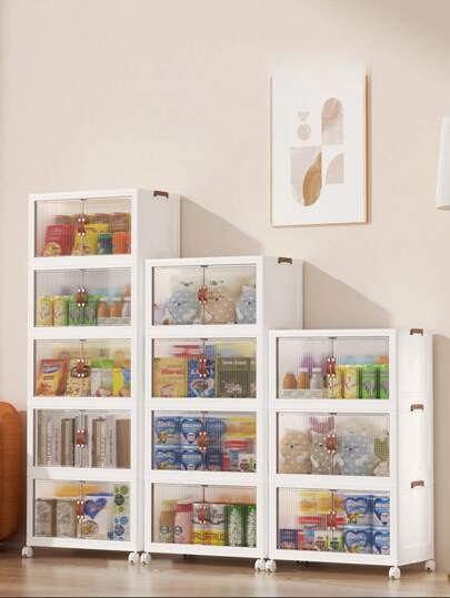 1入網狀透明雙門推拉式收納箱,帶活動輪,大容量,可多方位收納衣物、玩具等,適用於客廳、臥室、書房、辦公室等多種場景 - 白色 - 查看 4