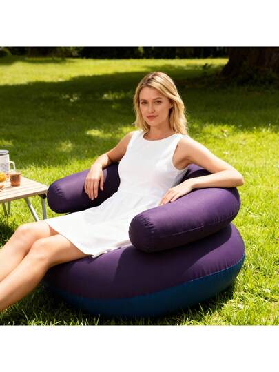 1件装U型充气沙发,便携式露营椅,植绒慵懒沙发,带扶手和靠背的室内躺椅,适合户外休闲和露营 - 彩色 - 查看 1