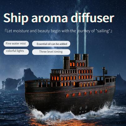1个USB供电船型香薰机 | 空气加湿器,带7色氛围灯、3种定时设置、静音运行,适用于酒店、家庭、办公室的精油香薰机(不含精油) - 彩色 - 查看 1