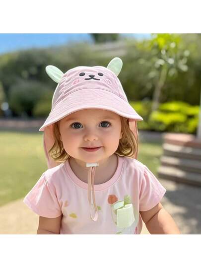 1 件男女通用 0-3 岁儿童动物卡通连帽围巾,透气防晒护颈斗篷,适合婴儿,春夏秋季轻便速干太阳帽 - 1PC - 查看 2