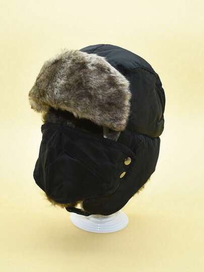 1只中性實色休閒帽,附面罩和耳袋,防風保暖,適用於兒童/青少年 - 黑色 - 查看 1
